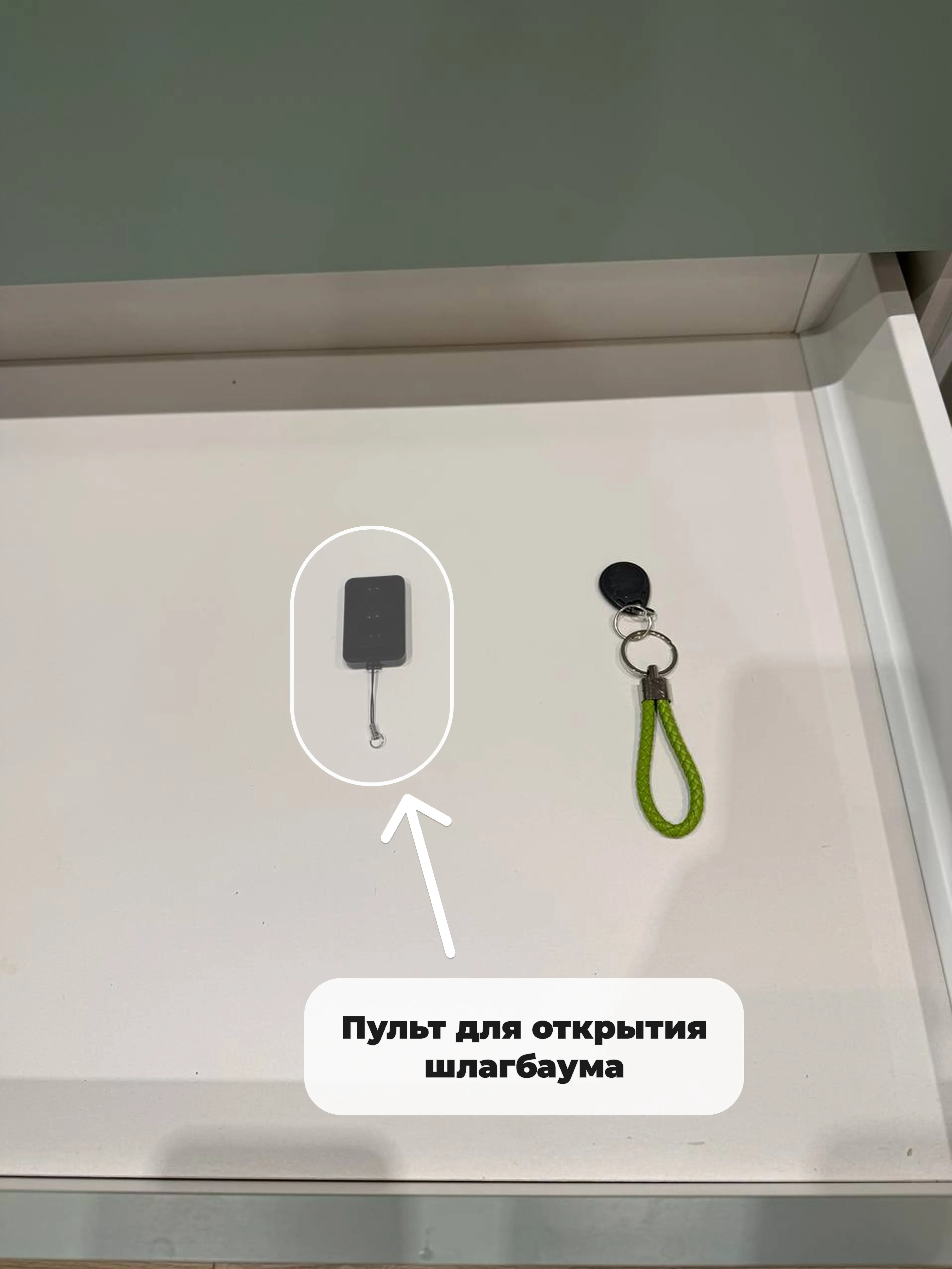 Пульт управления шлагбаумом находится во втором ящике кухонного гарнитура, там же, где лежит домофонный ключ. Для поднятия шлагбаума нажмите на нижнюю кнопку пульта. 🔴 При утере пульта от шлагбаума из залога удерживается штраф в размере 2500 рублей!