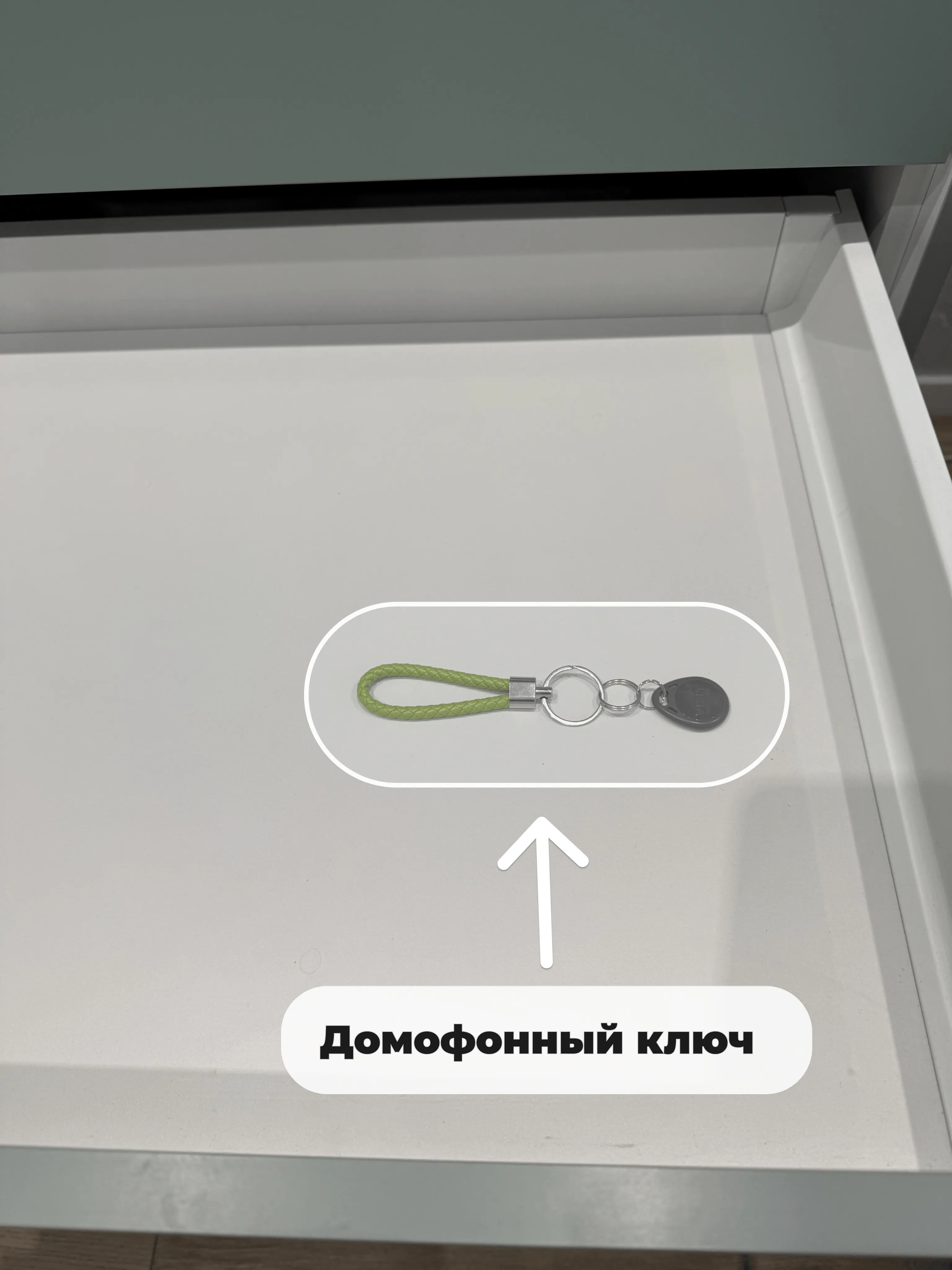 Ключ для входа в подъезд дома находится во втором ящике кухонного гарнитура, там же, где лежит договор аренды. ‼️ В случае, если вы вышли из дома, забыв ключ, Вы можете набрать на домофоне номер квартиры — 41, дверь откроется автоматически.