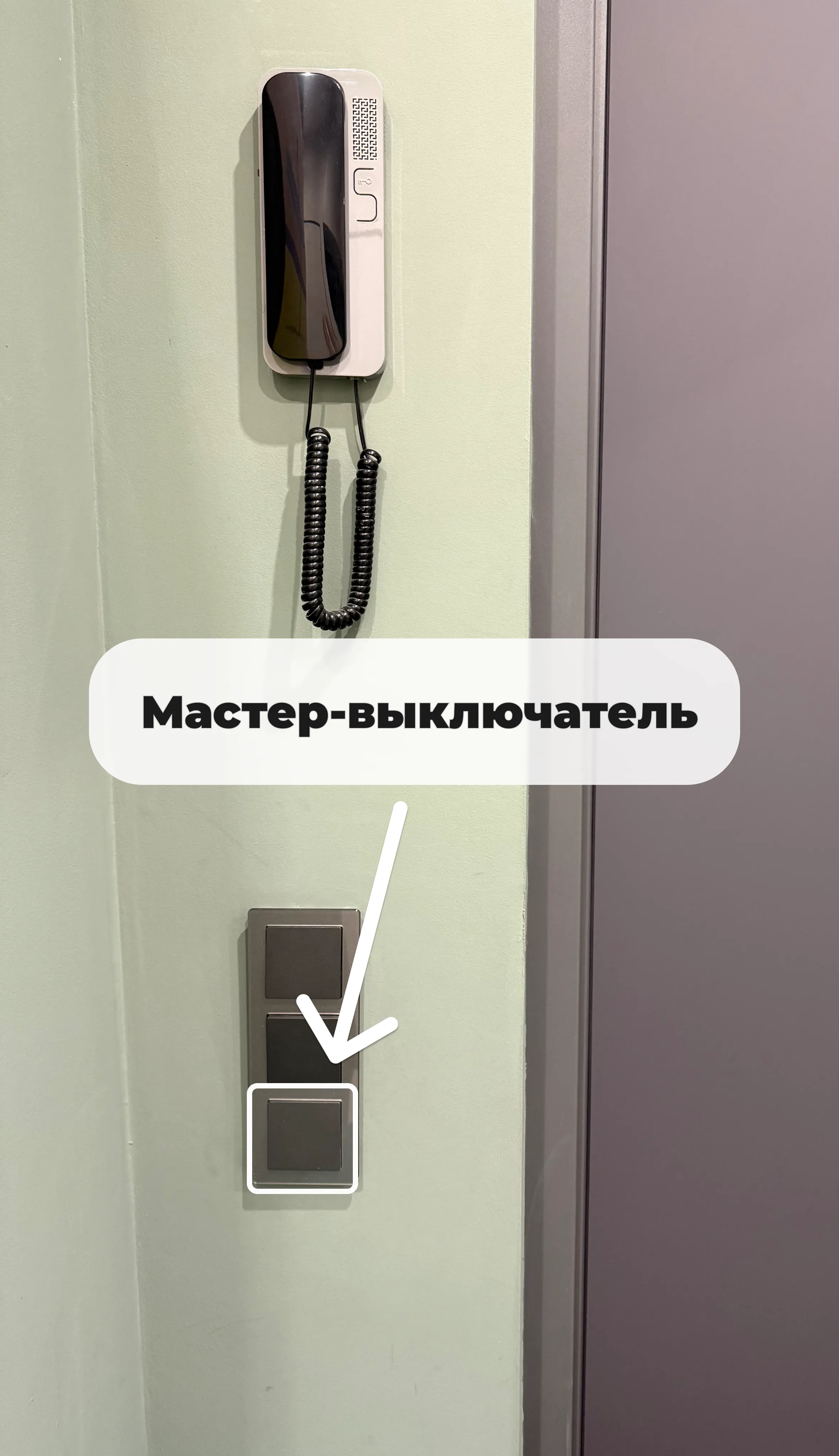 При выходе из квартиры Вы можете отключить всё внутреннее освещение с помощью мастер-выключателя, расположенного в нижней части блока.