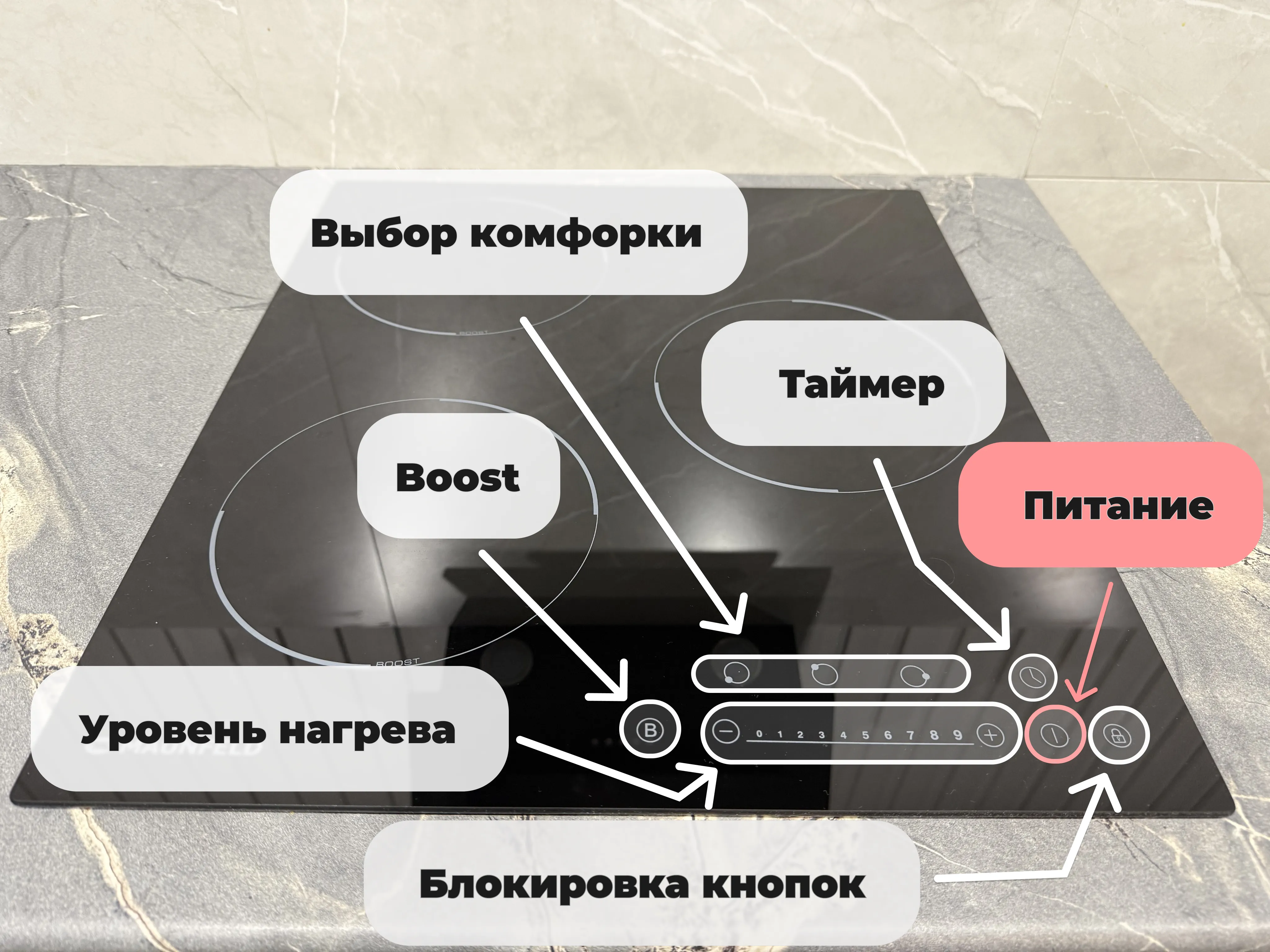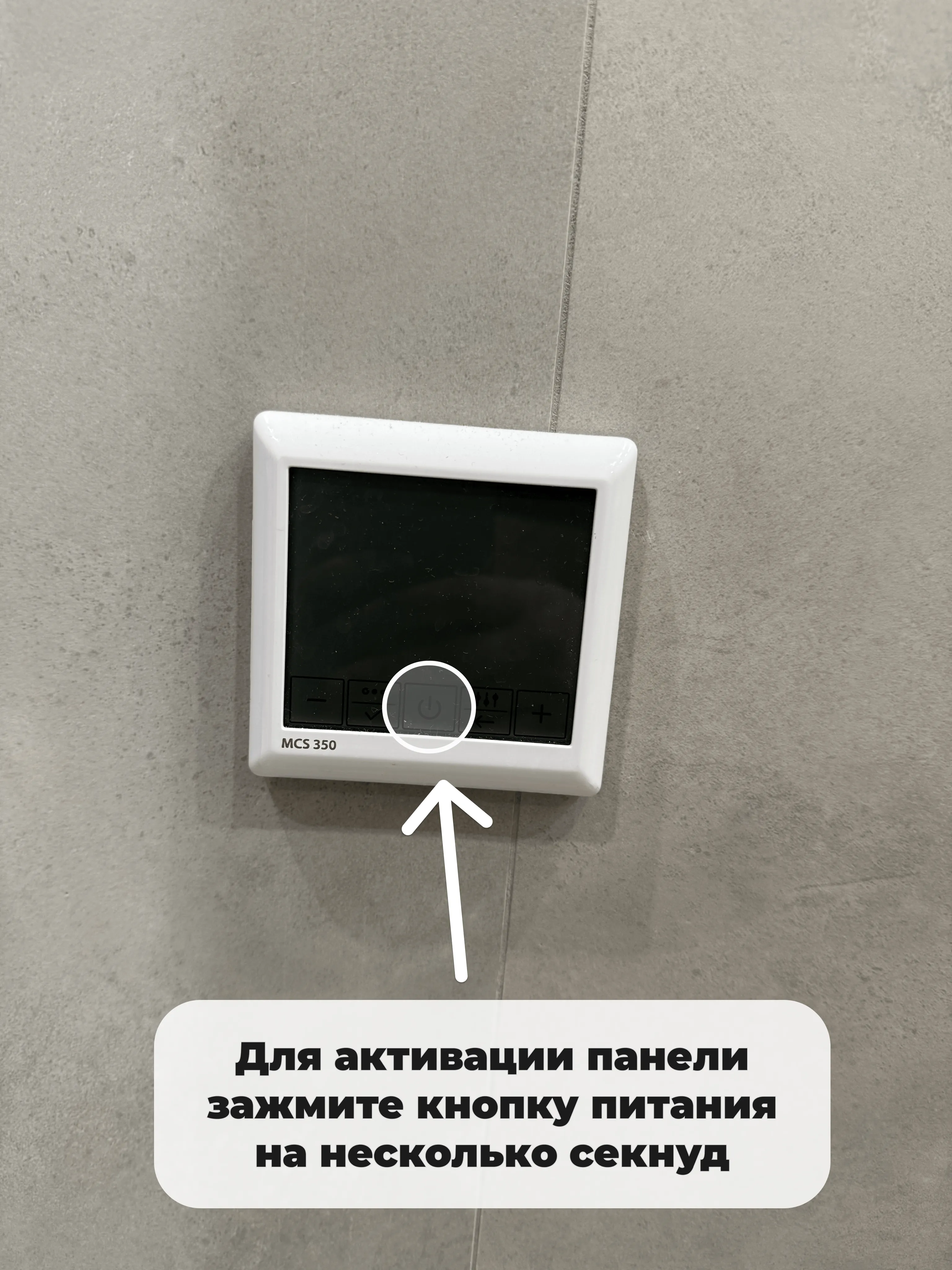 Для активации системы — зажмите кнопку питания на несколько секунд. Для выключения — активируйте панель управления и снова удерживайте кнопку питания.