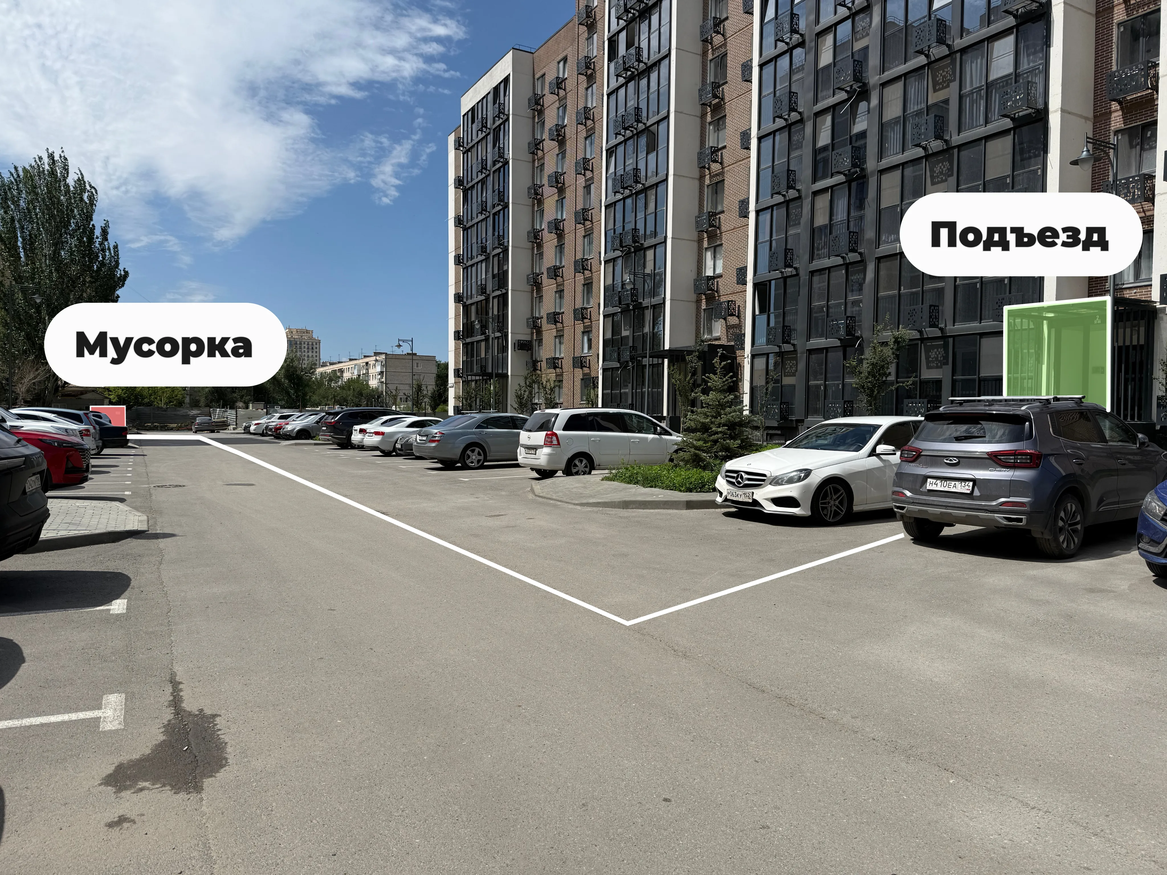 На фото обозначено расположение мусорных баков на территории жилого комплекса.